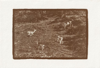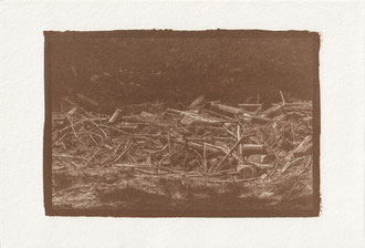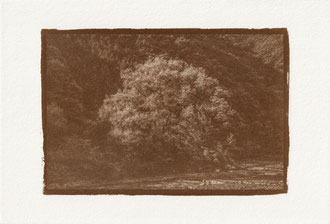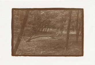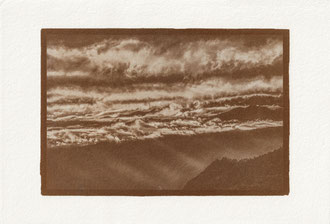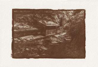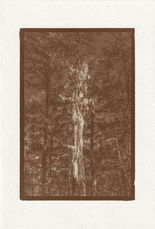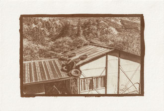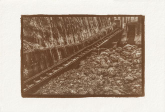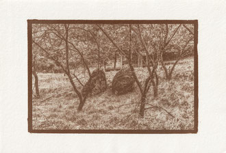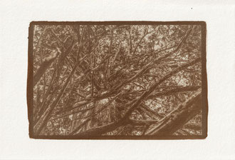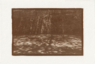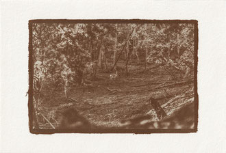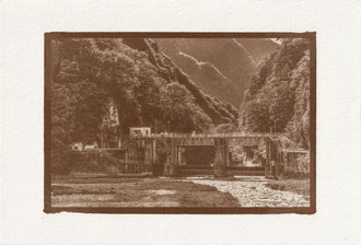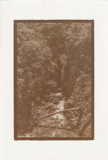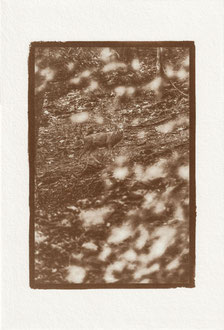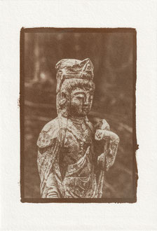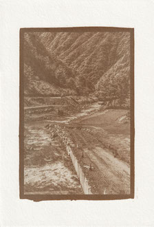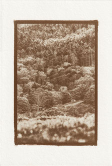 この記憶を留めるために、私はソルトプリントを選んだ。鹿塩の塩の湧水は、海水に近い塩分濃度を持ち、調整せずそのまま使える。この水を紙に沁み込ませ、銀と反応させることで像が結ばれる。土地で生まれた水が作品に刻まれるとき、風景とプリントはひとつに繋がる。そしてまた、像は完成した瞬間から変化を始めている。やがて退色し、コントラストが薄れ、記録としての形を変えていくかもしれない。その移ろいは時間の流れの可視化であり、記憶と忘却の間に現れる残像だ。